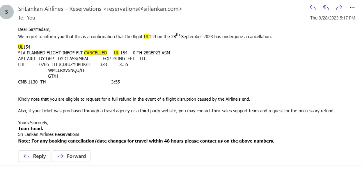 Sri Lankan Airline is also not replying to emails of the ticket issuing company for the refund process. Such a pity.