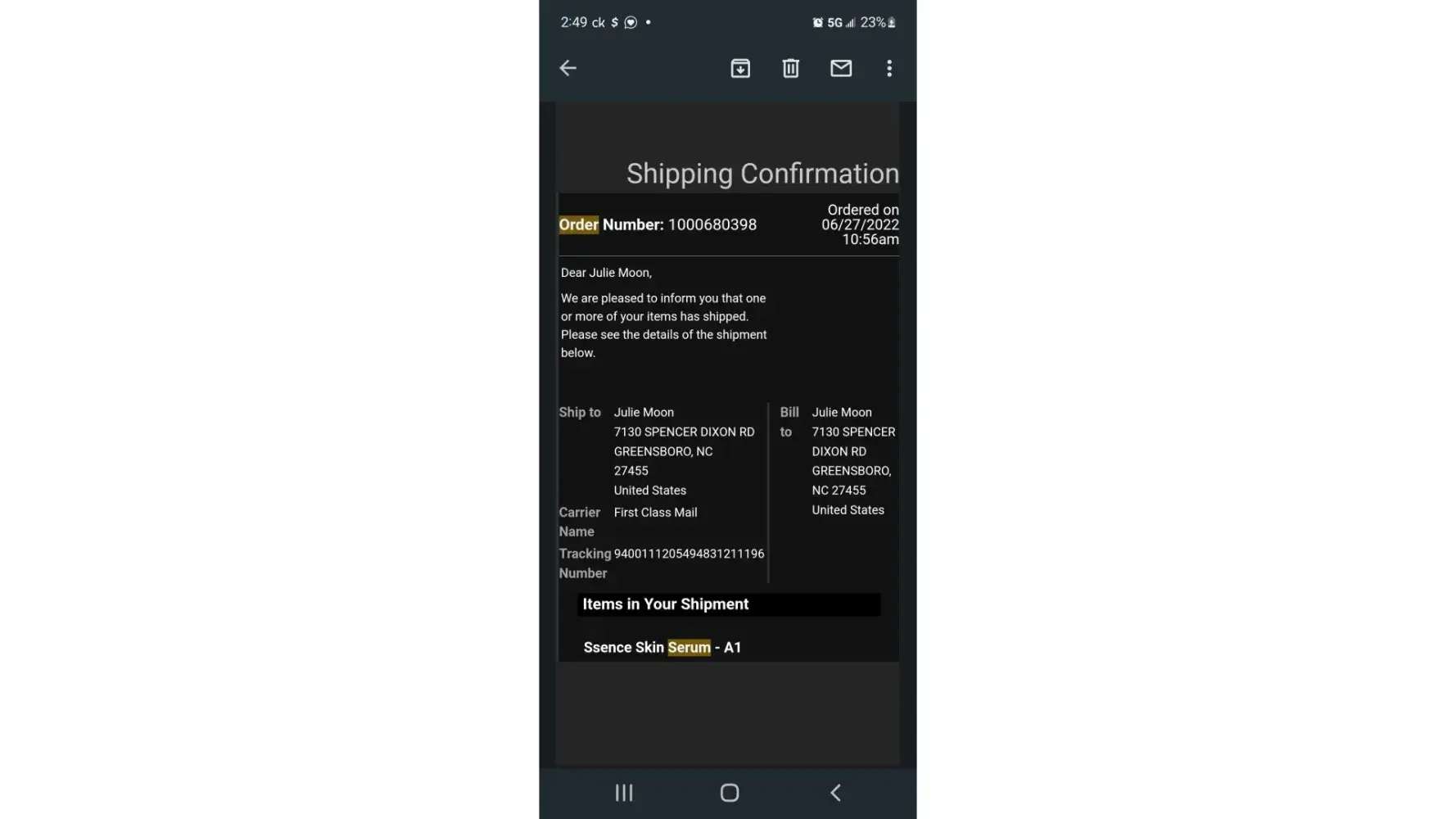 On 12/27/22, I received another auto generated email. Again, I replied asking for shipment confirmation.