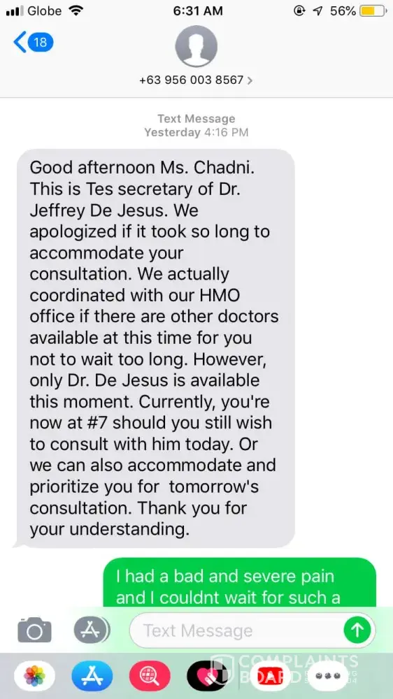 Read full complaintSecretary of Dr Jeffrey De Jesus