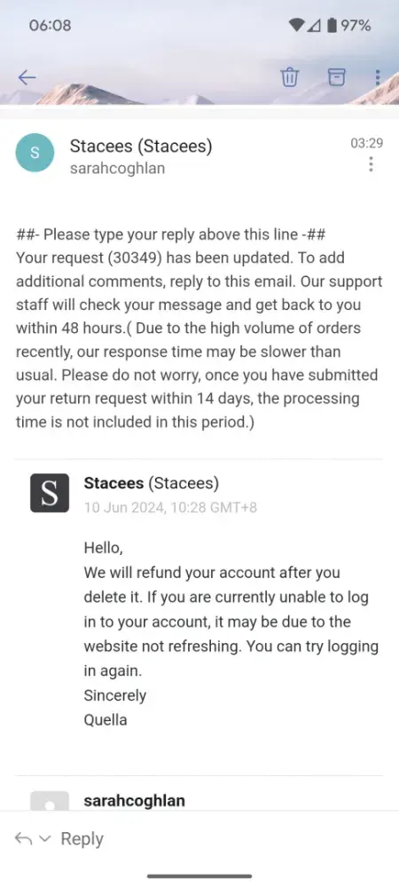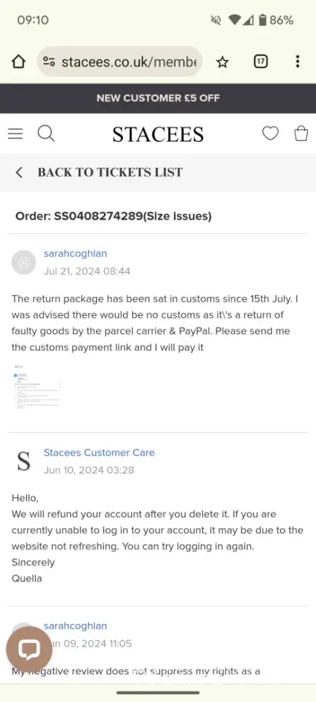 STACEES Returns, refunds and customer service dreadfull!!!!