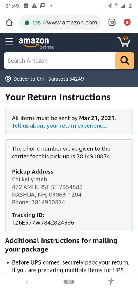 Desired outcome: Release my packages to Florida or return all to Amazon