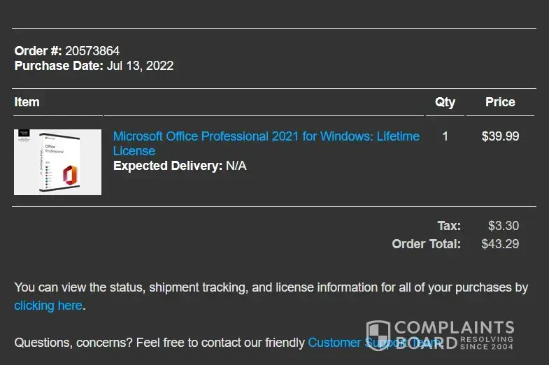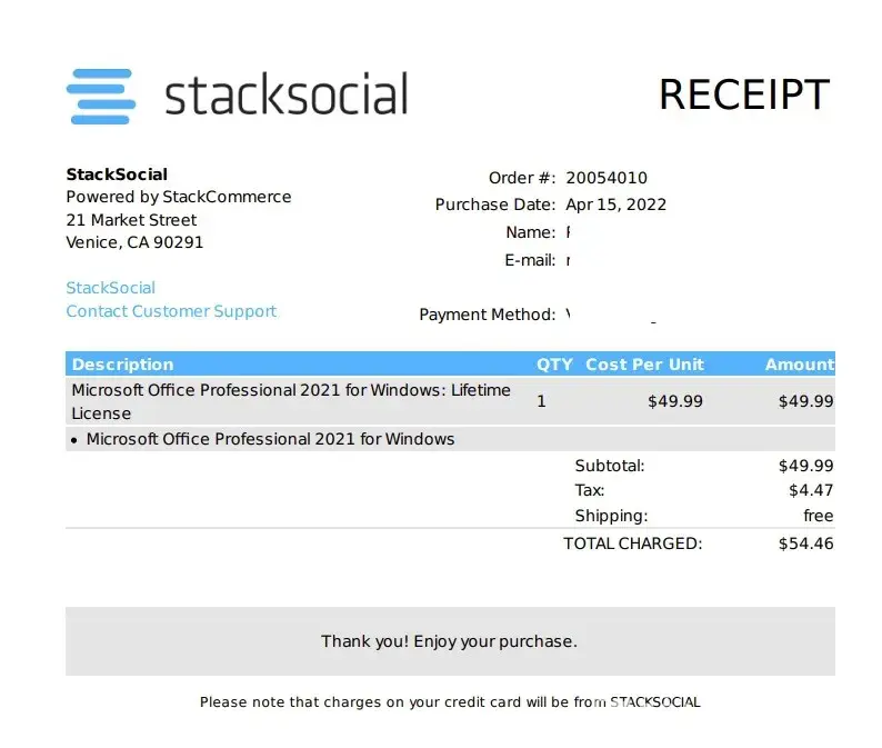 I bought the Microsoft Office Professional 2021 for Windows Lifetime License for $39.95, from Stacksocial. The order date was November 01, 2022.