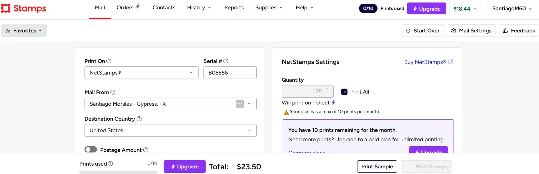 i bought stamps from stamps.com one time for $11.18 on March 26, 2021.