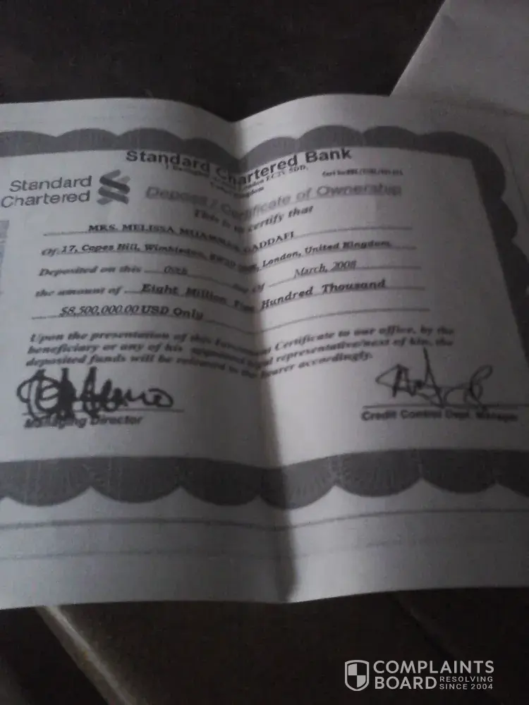 Standard Chartered Bank's business practices are illegal; giving them any confidential docs is risky.