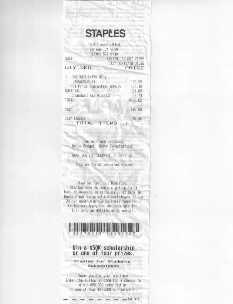 I called 2 of your stores in Santa Monica, CA to check on current inventory of Brother toner TN750. I was placed on hold for over 10 minutes, hung up and redialed a few times but no one answered. I called another Staples and after a short time a person answered and had the product. I requested a price and he quoted me $125.99. Your web price was $94.99 and he told me I had to show the checkout person the quote on YOUR website ie; price match. I politely told him the policy was very poor and that logically if another company sold the product for less, then that would make sense. But how do you defend a low price match with the same company? I addressed this question to his supervisor, Ashley and she refused to answer me. I told her she was a representative of the company and politely asked her if it made sense to her. Her response was it's not my company and she became arrogant and didn't want to talk.
