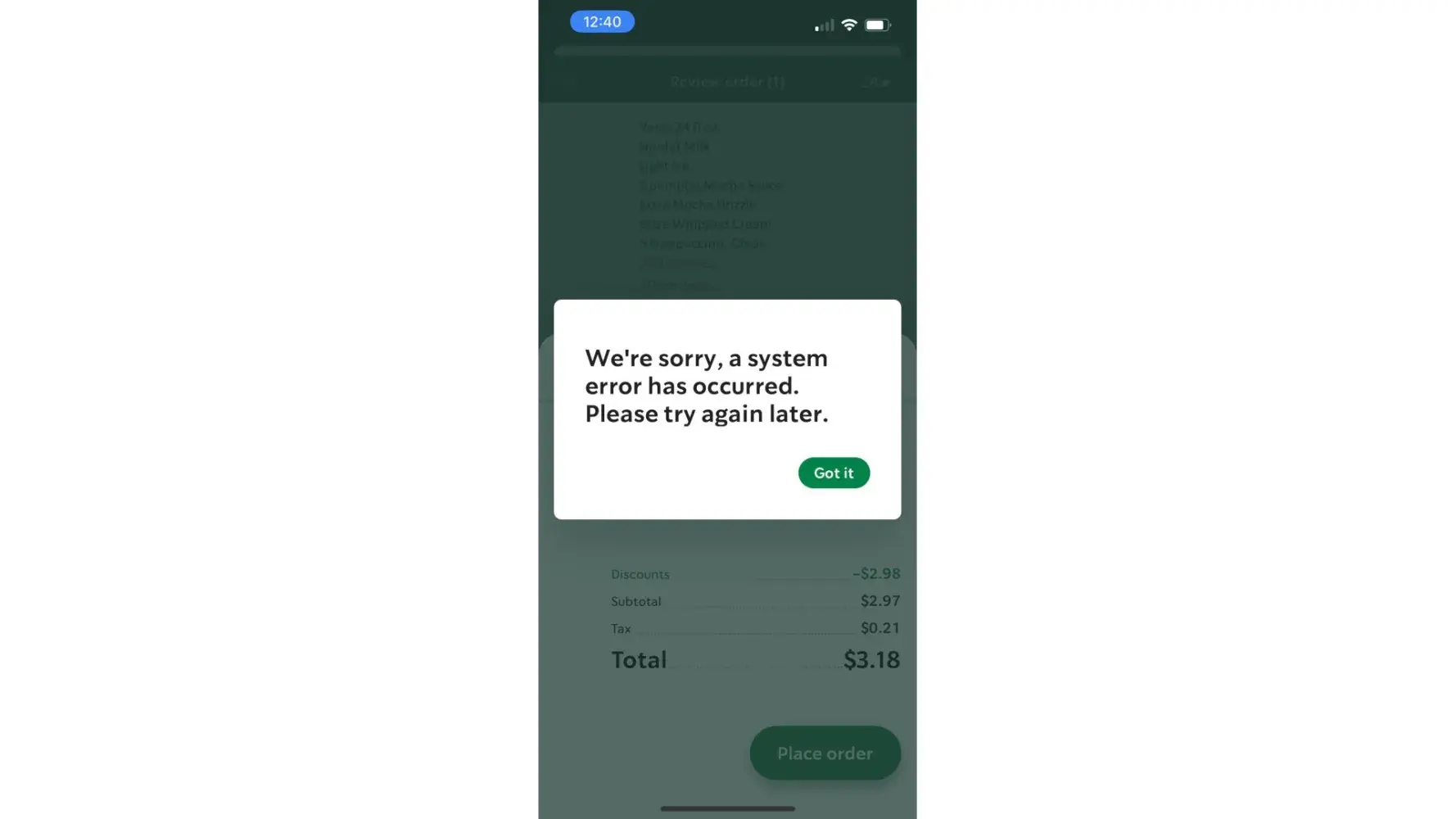 Hello, My order was incorrect this morning, yet again. I spend $8 a coffee almost every day and I order it with light ice. This morning the coffee cup was fill more than 3/4 cup full of ice. Which leaves me about 4 sips through the straw of coffee. This isn't the first time this has happened, I'm just a little frustrated and can't take it any longer. Also...