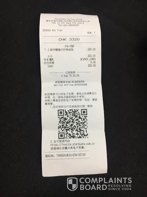I bought some Yunan coffee beans from the Starbucks at Terminal 2 at the Beijing Capital Airport on 23 July. There was no information on the package so I asked what kind of roast it was and they told me medium, which was what I wanted. However, when I got home and opened the package it turned out to be a dark roast. I don't like that type of roast and would not have bought that coffee had they given me the correct information.