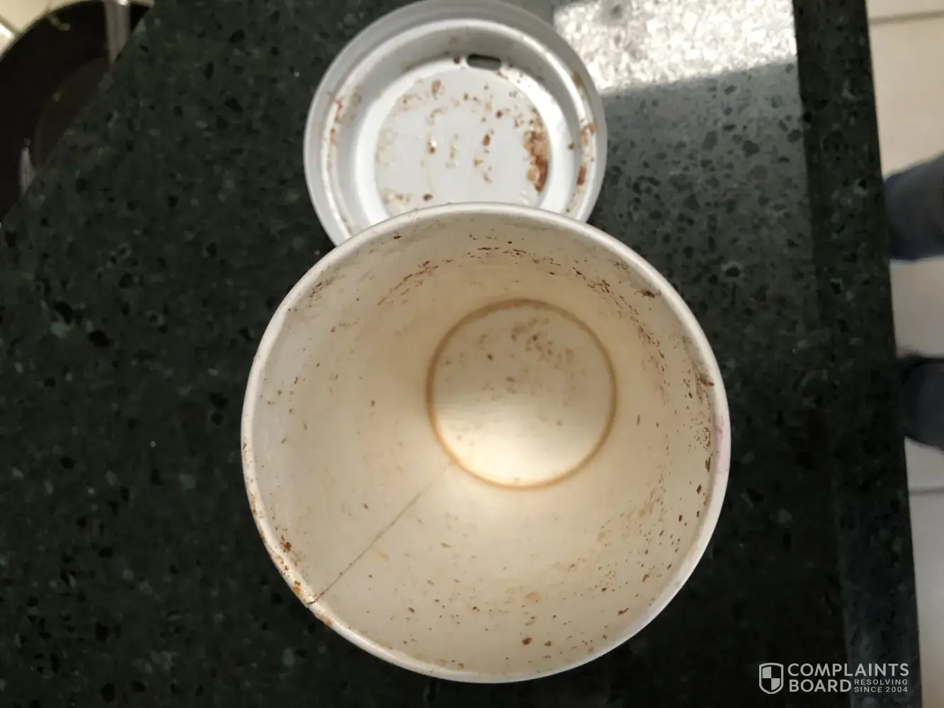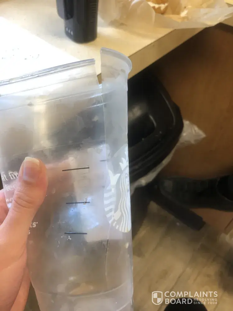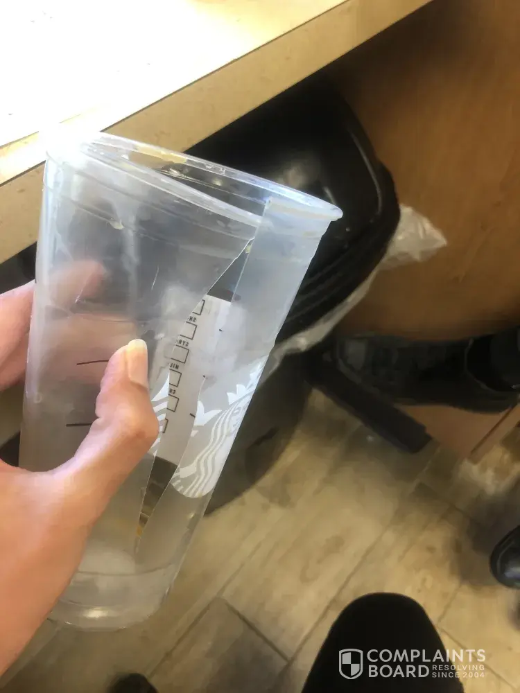 I ordered a venti vanilla sweet cream cold brew and upon leaving the store, I was holding my cup firmly. The whole cup split in half along with the lid. My whole drink spilled everywhere. I think this cup was defective because it split so badly. I have never had this happen before and I have been a very loyal starbucks customer for a long time. I would like a new drink to amend this issue.