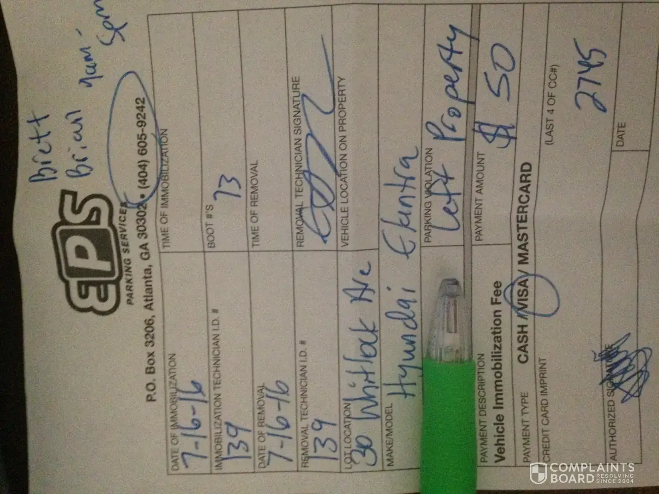 When I came back to the parking lot (around 12.45 pm), I saw an orange ticket was stick on my window by eps parking services employee technician id#139. I asked one of the starbucks employee, but she did not know anything and advised me to call the number on the orange ticket. I called the number and found out that the eps employee was still in the parking lot, dealing with other starbucks customer's cars and some people regarding the same problem (I saw some cars had the same ticket).