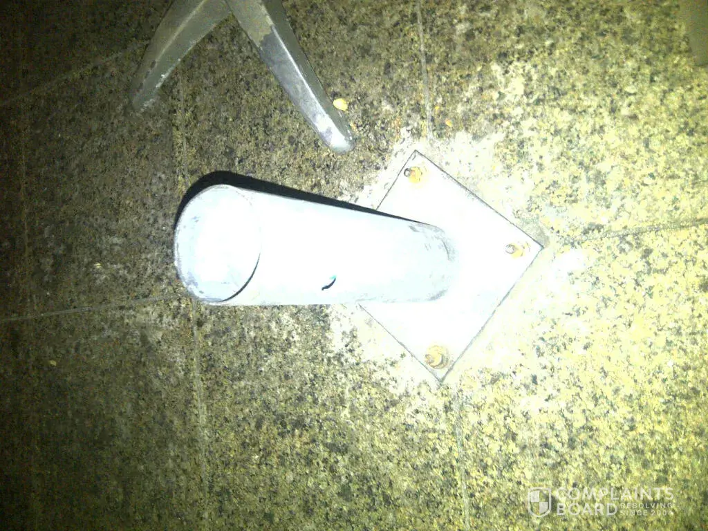 In my visit yesterday tuesday 19th july 2011, at 12 am, having my breakfast, 2 of my friend approach me I stand up to shack hand in my turn towards them I hit small fixed pipe/ with sharp edge in my right leg fore bone (tebia), I suffer saver pain and a moderate bleeding, first aid was given immediately. I inquire why this steel pipe there?!, they answer we can not remove we need an order higher up, I ask about day manger, never appear, the stewards who know me well as I am regular customer apology. I advice them we need an immediate action as this might hit a kid or lady or an old man, the answer this happen many time even for us while cleaning, and during my visit about midnight I see one of staff who welcoming me, and asking about how I feel now, I ask him do you know the story he say no, no, this also attract me that no one even hand over the incident or even give awareness about what happen.,,, this force me to take a photo and drive me to put a formal complain, even staff welcome me to do so as they have no say and he himself show me his leg that he also trip over this few dayes ago.