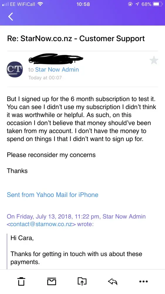 I have been a loyal paying member of StarNow for many years, in fact since it’s inception as a business. I pay via direct debit and have done so for years, so 6 monthly payments are taken out of my account.