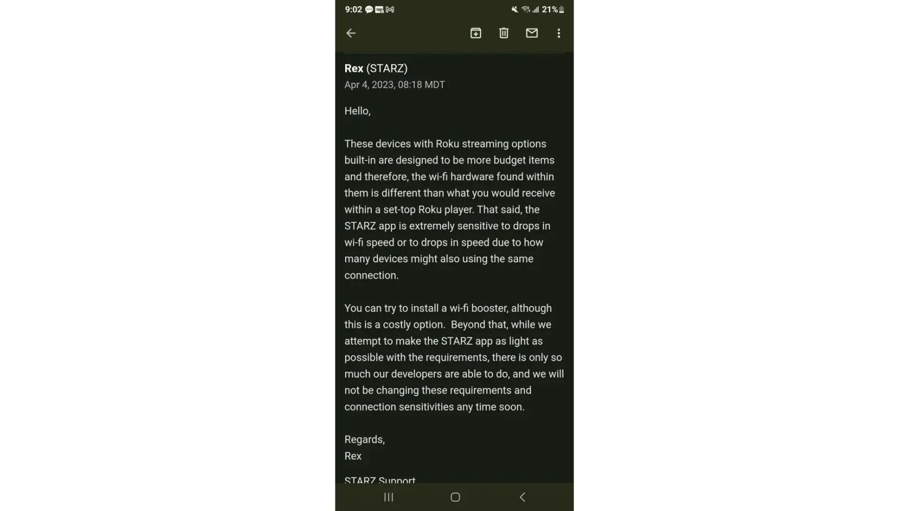 The Pp is really bad on roku tvs. I was told it's my internet that I got a TV that is meant for people on budget and that they will not be changing the quality on the app anytime soon. They don't like that I complained about the quality and they told me they would be more than happy to cancel my account. So instead of reporting how bad the quality is to their team they prefer to tell their customers what they buy to stream on isn't up to starz standards for streaming.