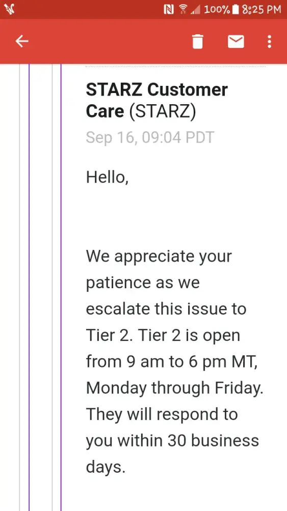 Warning! if ever you decide to purchase starz, do not! i purchased a free trial and canceled before the 7day trial was up through google because starz wouldnt let me due to it kept saying i had no subscription to cancel. Spoke with google to ensure that it was canceled to keep from being billed. She sent email receipt as my proif! also contacted starz to let them know it stated i had no subscriptiin to cancel, so rep walked me through to see if i canceled correctly and stated that im correct dont have a active subscription. She then sent in a ticket saying it must be a glitched. While waiting for response, they went in my account, and took funds. Contacted them bck and they told me i had to wait 30 days due to them working on my ticket in tier 2 dept. They then responded by saying they cant refund because i hve starz on a app which they couldnt find. They then charge me again the following month. Now im pissed! because their taking my funds and i dont have service which i then contacted again and sent email from google showing free trial cancelation before date, and also sent shots from starz rep of their website saying no subscription and bank screen shot. Once a tier 2rep from starz contacted me by email saying that they will look into again. I then received email saying no refund because i need to search to see somewhere i have starz... Wow! 3weeks later i get a email say their looking into it to recend any emails and screen shot of my account that they debited twice. I did that the same day the next day i get email saying they will refund me half of my money back in 3-5 days. I call them back to send me paper check cause i had to cancel that card and get a new one to keep from them biling my card monthly. She then tells me that that their showing that they been denied me although im reading from their email for the same day, stating they will refund my money. So unless you have free money to give away, they make it hard to cancel and they dont have a liable way of really speaking to someone to cancel or resolve an issue. I will never ever purchase starz again no matter what! be careful...