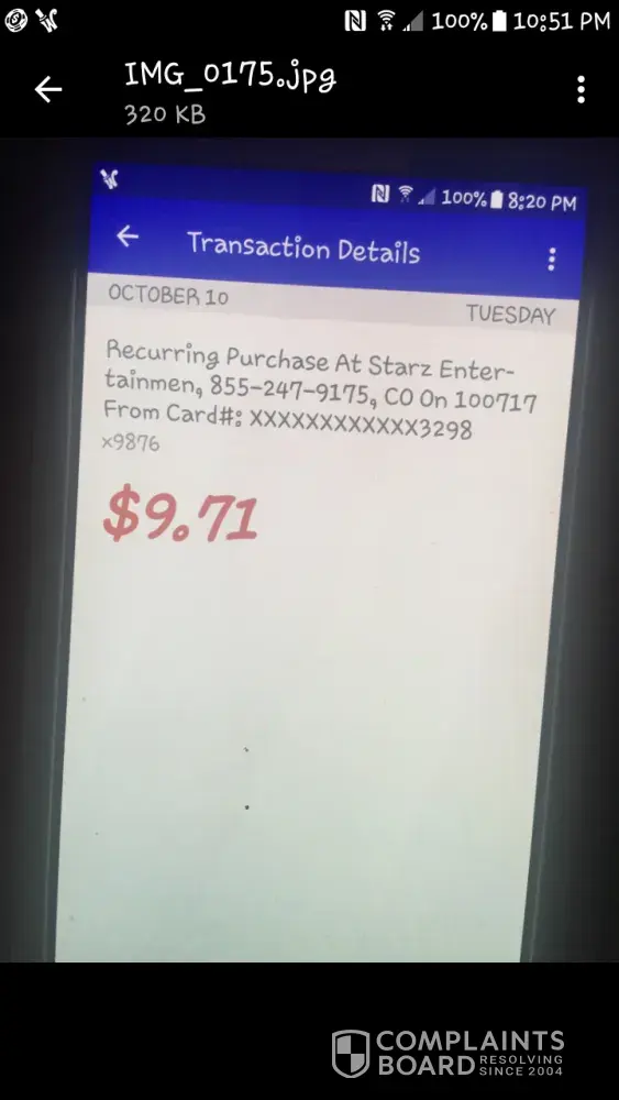 starz scam of free trial on app - case #265023
