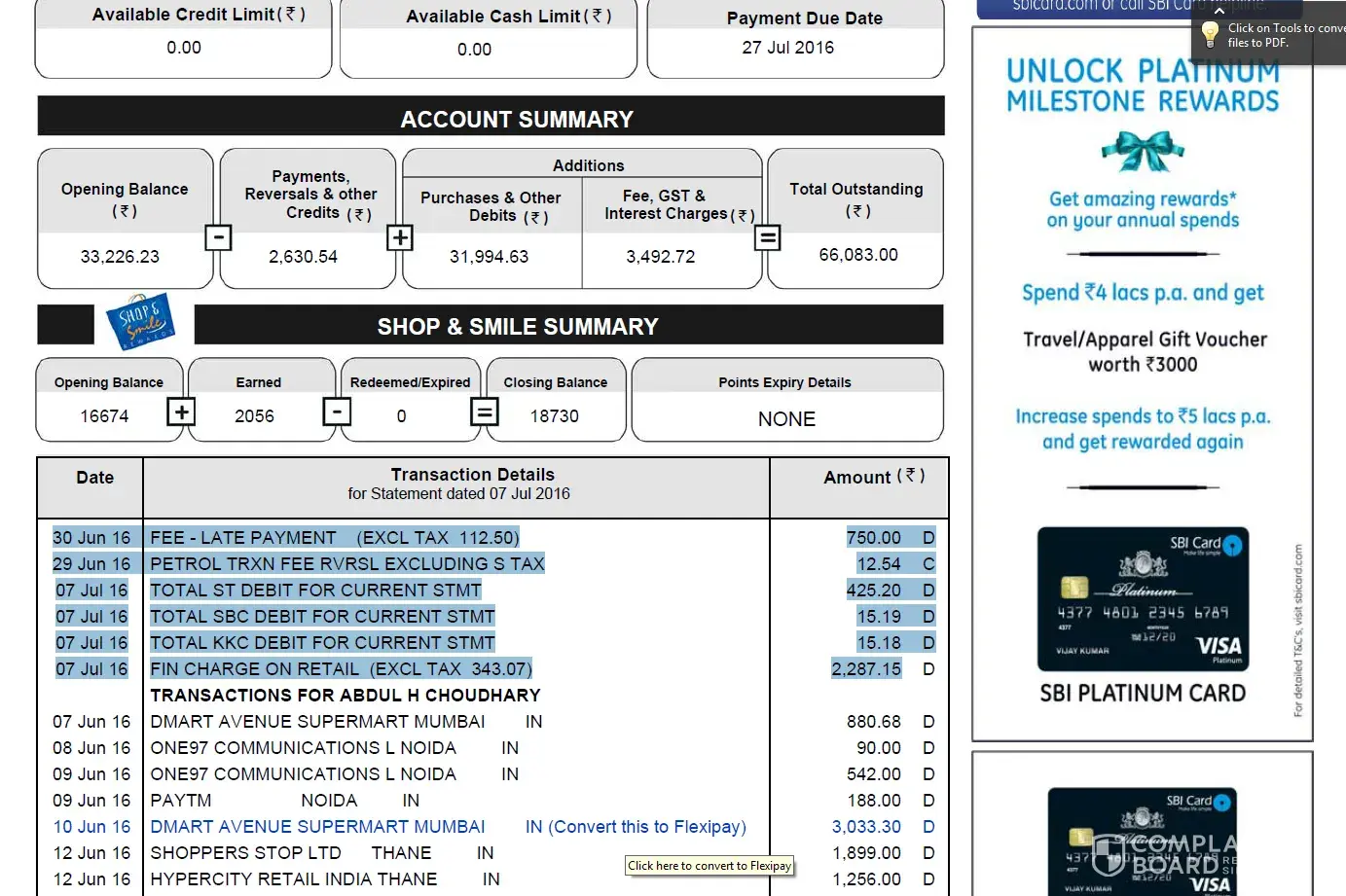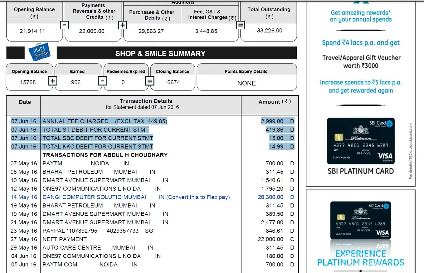 I would like to give a suggestion that please do not use SBI Credit card. First they will speak very nicely so that you can take card and later in case you can not pay for 2 months the due then the local mawali ( Dev Prakash type) will come to your house and try to kick on your butt.