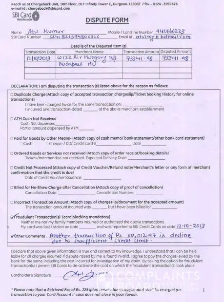 I also contact merchant (WIZZ AIR) they told me that bank i.e SBI Card is only authorized to contact there acquirer bank & follow the standard charge back procedure.