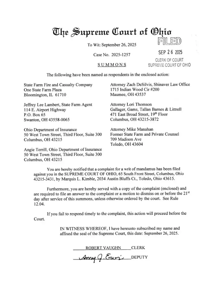 âï¸âŒ 1-Star Review âŒâï¸ State Farm is corrupt 💼🔥 Filed Kimble v. State Farm Fire & Casualty Co. ðŸ›ï¸ Case No. 2025-1257 in the Ohio Supreme Court for racial bias ✊ðŸ½, surveillance 🕵ðŸ½â€â™‚ï¸, privacy violations 🚫. "Client showed up wearing a blue suit, with a loud tie, an excessive amount of jewelry and was very braggadocious". ~State Farm claim notes~