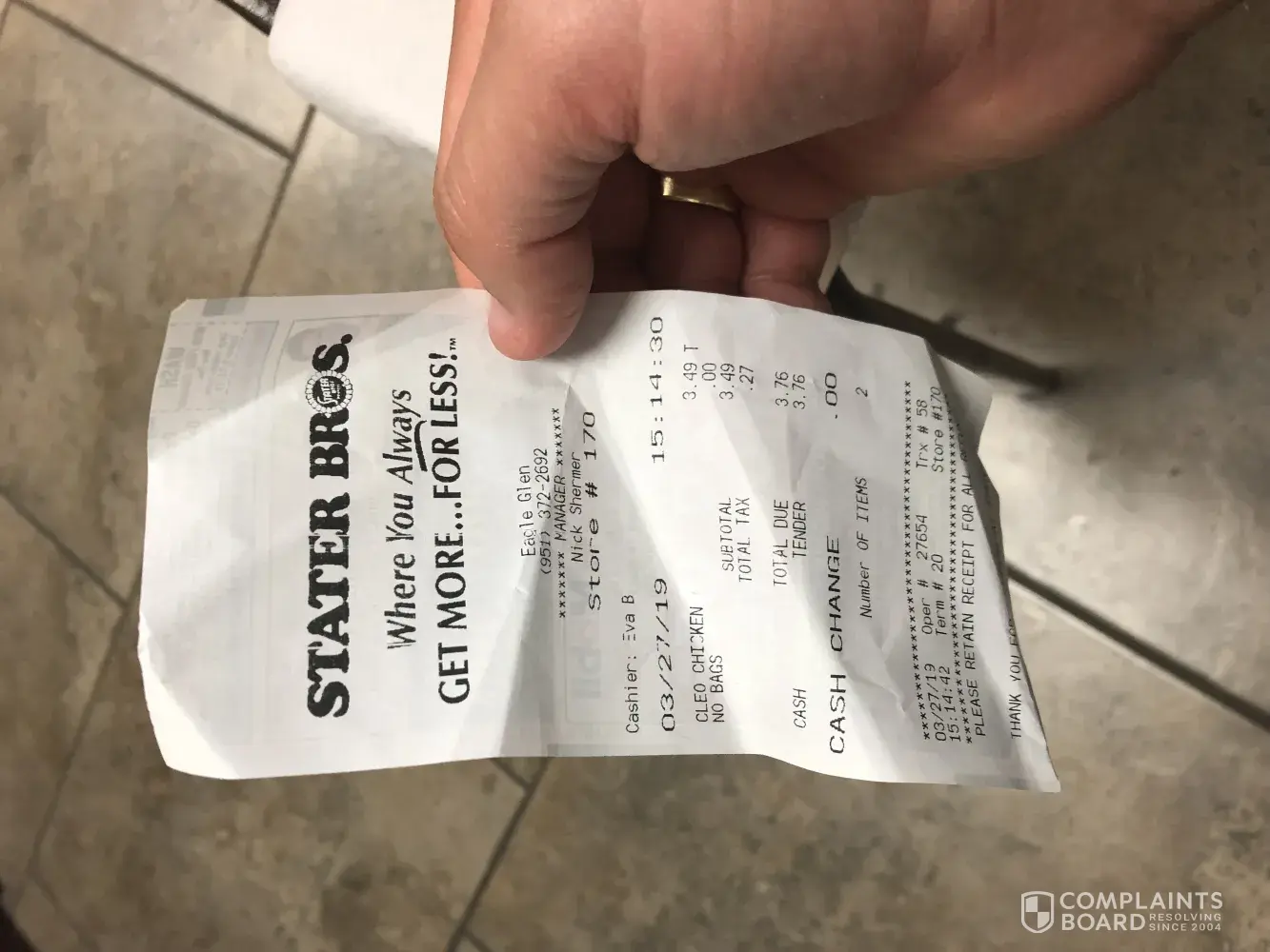 I continued to shop at our local stater bros store, By passing Trader Joe's, Sam's, Target and Walmart and a few other stores in my neighborhood. I always made it a point to continue to support and take my business to Stater brothers. Yesterday I went into pick up groceries for the week and for a bbq as we were having a few guests over. I spent well over $200. As I always do every week plus little trips in between. I picked up some steak, ribs, sausages and chicken for the bbq and I specifically asked the young gentlemen who was helping me in the butchery if the chicken was fresh and he confidently said it was and not to worry, everything is fresh. I explained I had a bad shrimp experience before but still said it was fine. Again trusting Stater brothers quality, I paid and left. As I got home and was unpacking my groceries, I could smell something really bad so I looked for where the smell was coming from and opened the chicken, that's when I realized it was slimy and rotten. My whole kitchen was stinking and so was my car when I had it in my passenger seat to go return it. When I got there and spoke with teller, I was just simply asked if I want my money back. I asked to speak with the manager as this is the second time this has happened. I was then helped my Marisa, she said she is sorry and went on to try and look for fresh chicken for me at the EXACT value I bought mine for, which i really didnt mind until she could not find anything that matched that and was struggling to make that decision to give me 2 more pieces because of the way it came packed. That really pissed me off. Iam a long time customer of Stater Brothers, I spend thousands of dollars a year only at stater brothers. I was inconvenienced, having to return to store, my time, my gas, my frustration being it the second time this happened, my kid waiting at home, it throws your whole day off. Then I get crappy customer service as if I'm trying to score extra chicken. That really sucks. You guys advertise that you have the best and freshest meat and this is the service I get when you guys mess up. Not once but twice. It scares me to think this could happen again when I'm just picking dinner up quickly. Get home to cook and realize the "fresh food" i just purchased is rotten. That being said, several times I've bought cut veggies and they are slimy in the inside, I end up just trashing them just after I bought them. I understand stuff happens, but this store needs to fix their produce and ESPECIALLY meat department before someone that is not careful gets food poisoning. I'm tired of this, can I still trust Stater Brothers with my family food?