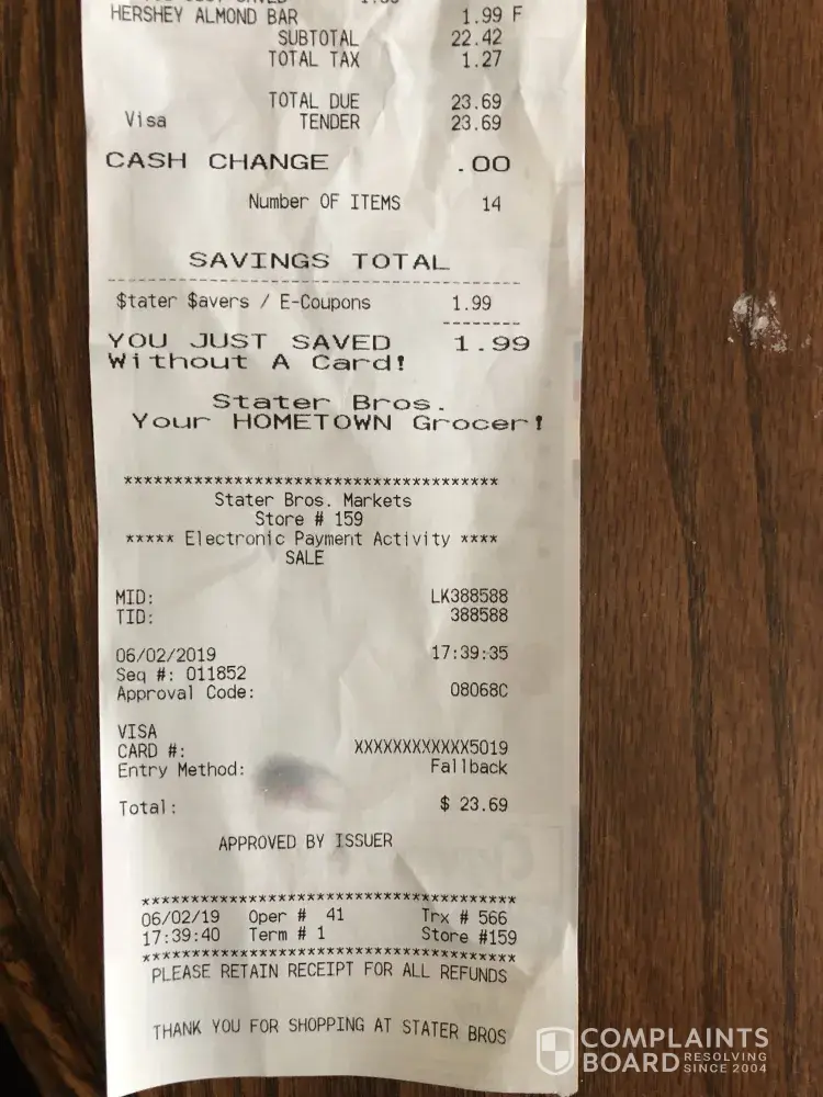 I just bought 3 Hershey bars because they were buy 2 get one free. As you can see from my receipt I was charged for 2 at $1.99 each then a free one with savings of $1.99. Then a 4th one that I didn't buy but was I charged $1.99 for. Normally I would let this slide but it keeps happening and I don't notice until I get home. Please note receipt and rectify