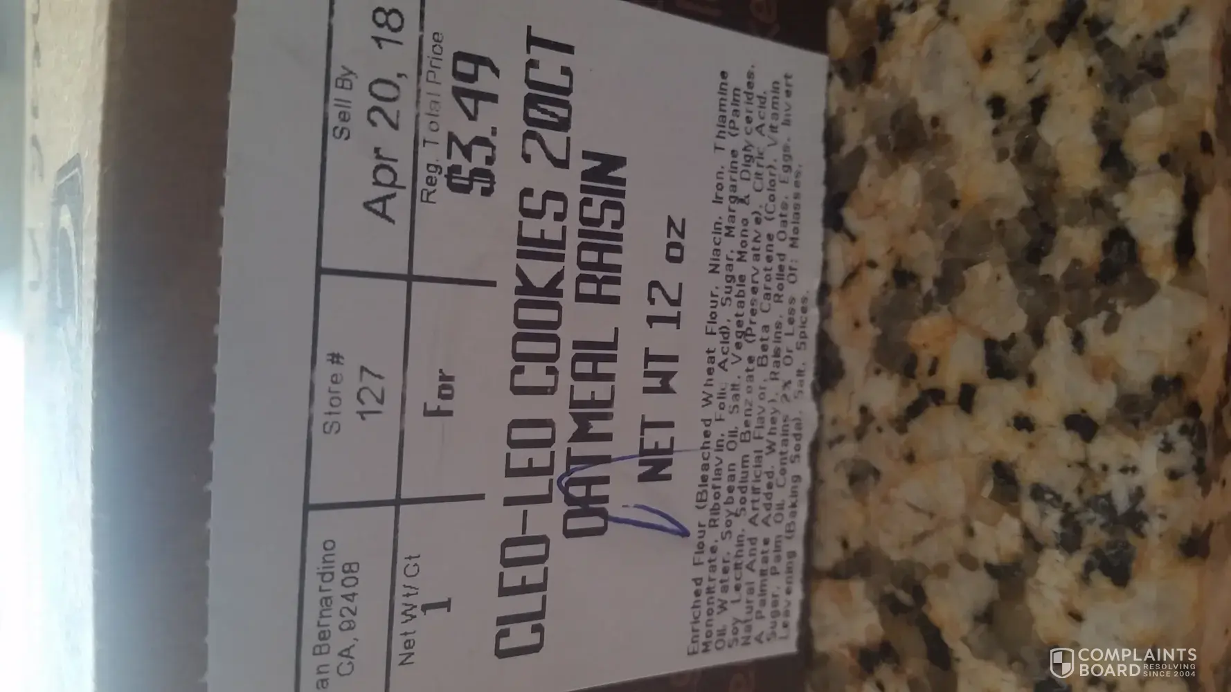 Bought a box of Cleo-Leo brand oatmeal raisin cookies from store #27. I bit down on a cookie & something stuck my gum & inside of my mouth! I spit it out & there were two pieces of wood. Looks like a broken toothpick. Unbelievable! Customers, please be aware of eating these cookies or heaven forbid giving one to a child. I will never buy anything from the bakery again.