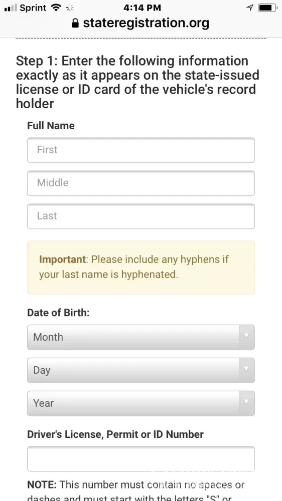 Don't use it. Go directly to the state's website. That's what I did as soon as i did some light scanning online as to this website's validity.