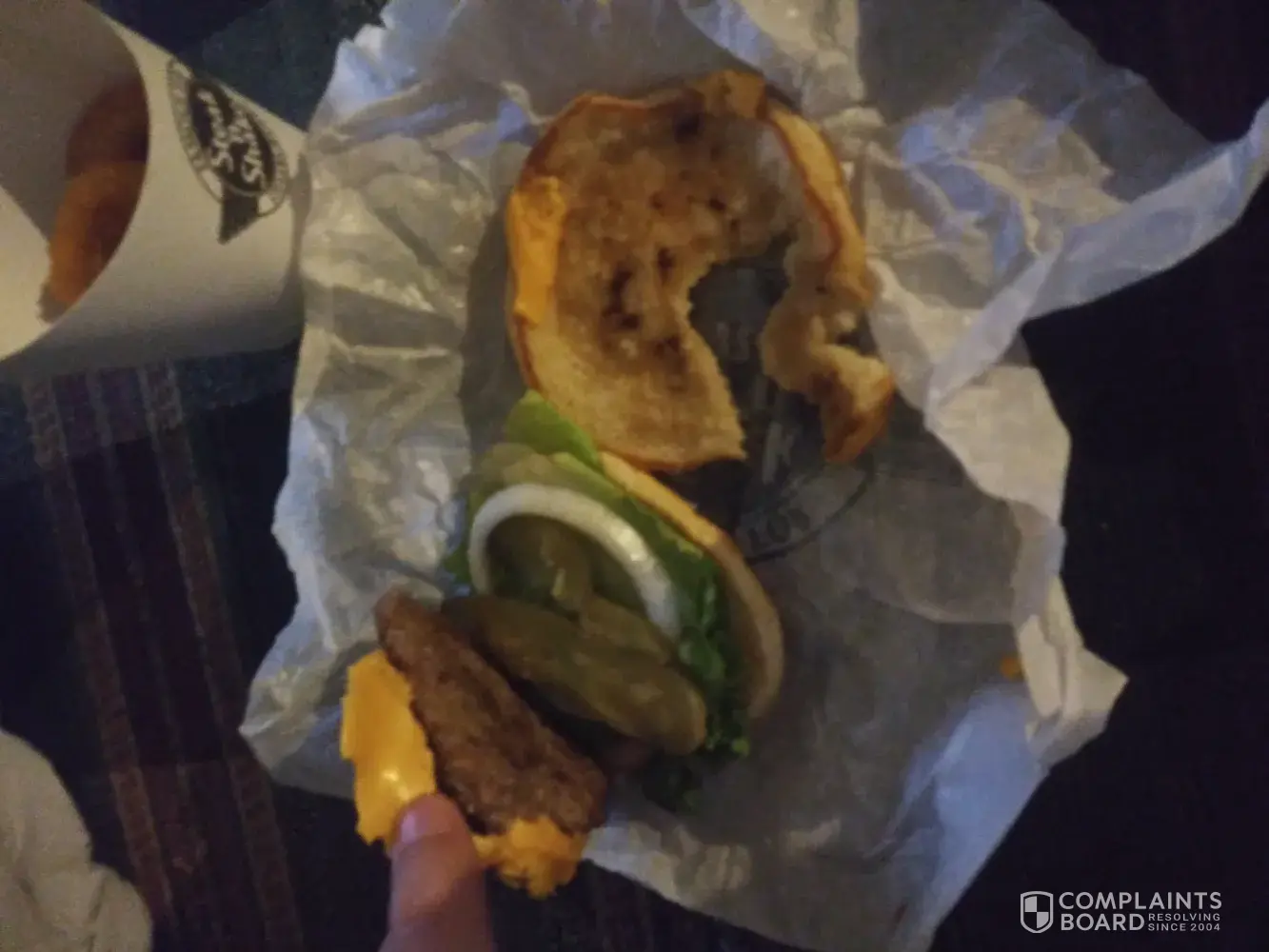 We ordered delivery for a treat. Thankfully my grandson's meal was good. Mine wasn't. I bit into a hard nasty patty. I didn't want to spoil it since it was his idea. It was horrible. I opened the bun to find a small, thin burnt piece of meat. It looked like they took 1/2 a patty, flattened it as much as possible to be larger than it was. It was about 2/3 of the size it should be and thin as a piece of paper, and cooked to the consistency of beef jerky. We always enjoy steak n shake; so I was very shocked. The store is located on Mt.Zion Pkwy in Jonesboro, GA. I just thought they should be aware.