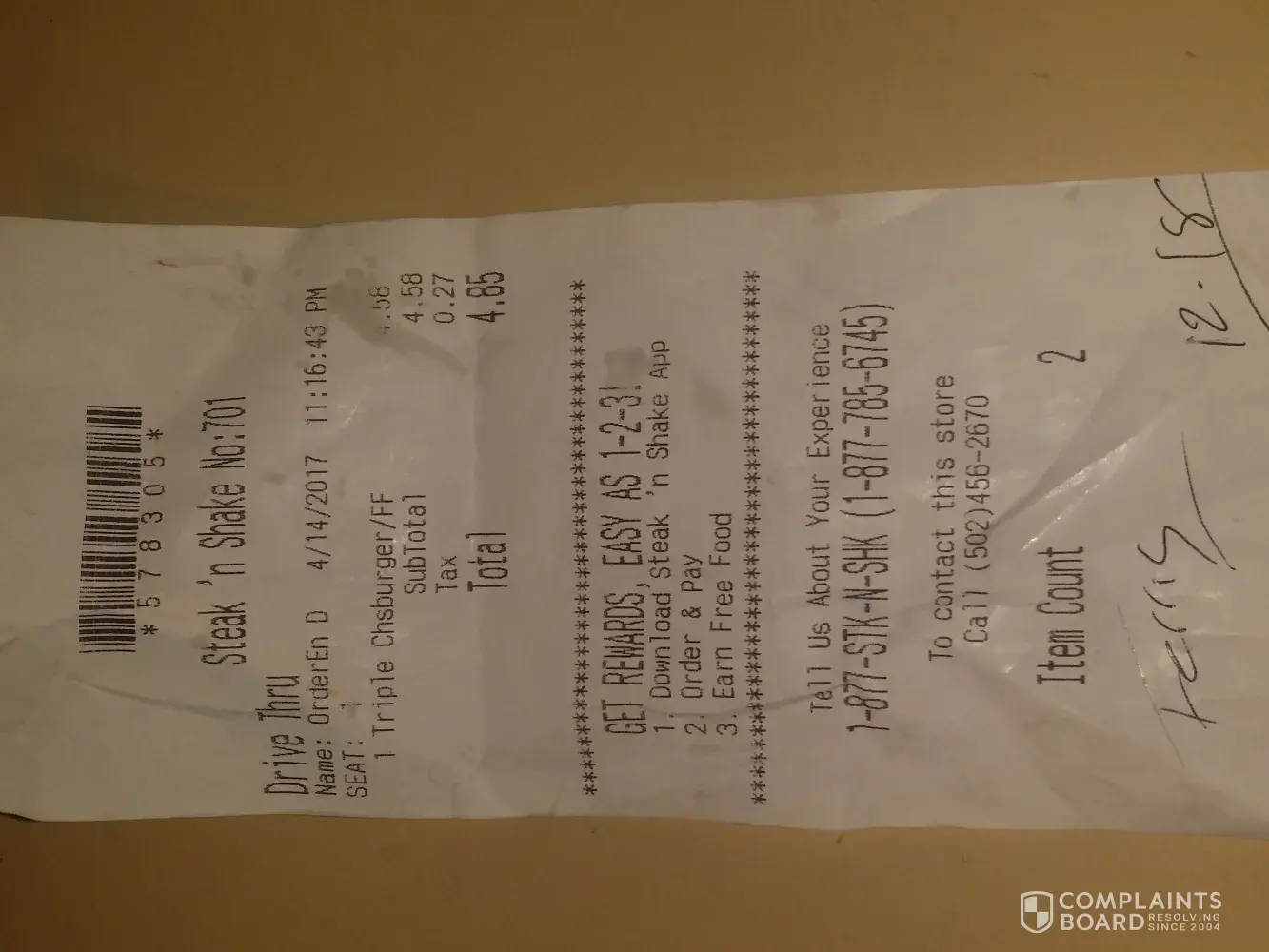 I'm complaining about a shake i ordered today