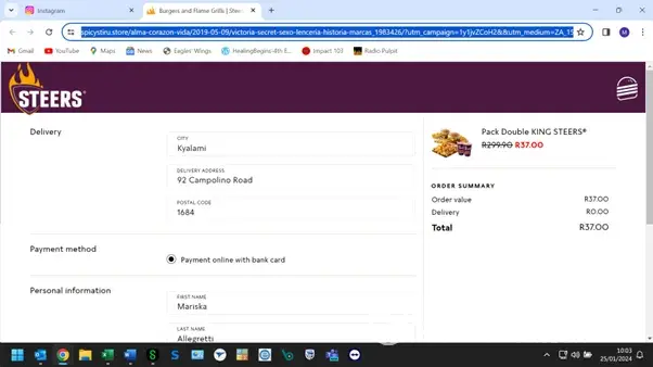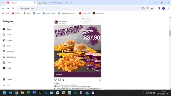 Clicked on a link on Instagram to: "sponsored" by Steers for Pack Double King Steer @ R37.90.
