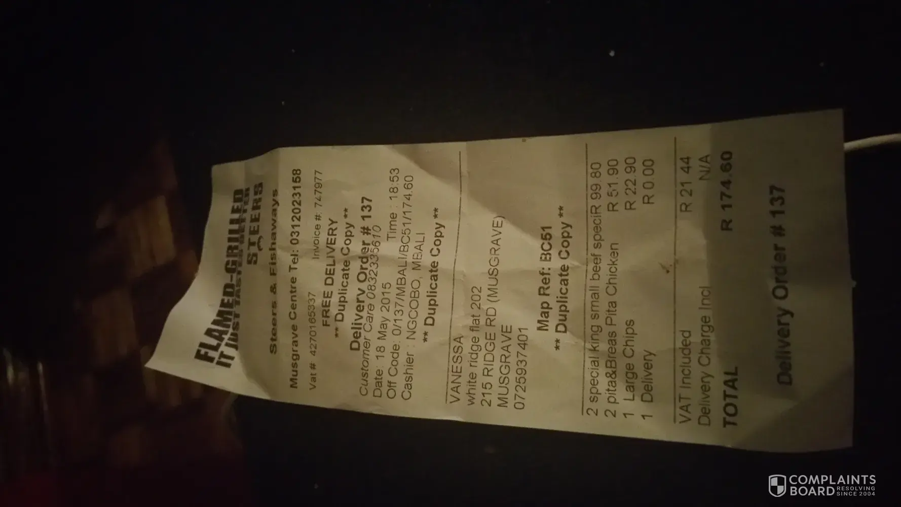 Tonight, 15 November 2012, I decided to get my favourite ribs for dinner for us as I am feeling under the weather and not in the mood for cooking. So I ordered a dubble rack @ R114.95 from Steers Life Style Centre in Centurion for delivery. When I received the ribs and opened the box, there was exactly 7 bones with the toughest meat ever on it. I took a photo as I couldn't believe I just paid a R114.95 for 7 pieces of bone! Steers was always my favourite place to get ribs, but the portions are not what they say and the prices are rediculously expensive! Don't thinks I will EVER buy from Steers again!