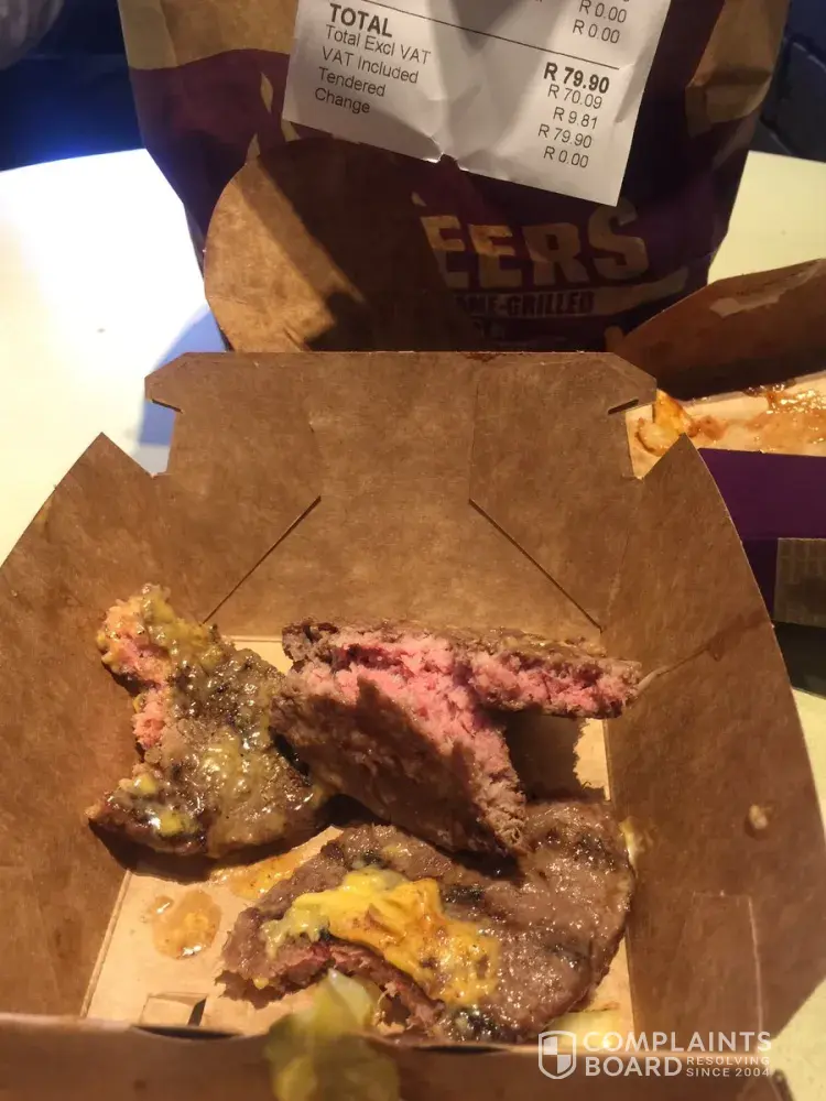I bought a 2x king steer burger which was raw so raw to that even dogs could not eat them, it tasted rubbery, I only realized it when I was like 20 KM outside Johannesburg. I wasted my R160 for raw burgers.I am really not happy about it. The cashier took the slip, their twitter is not responding what a day light robbery by Steers so unfair.