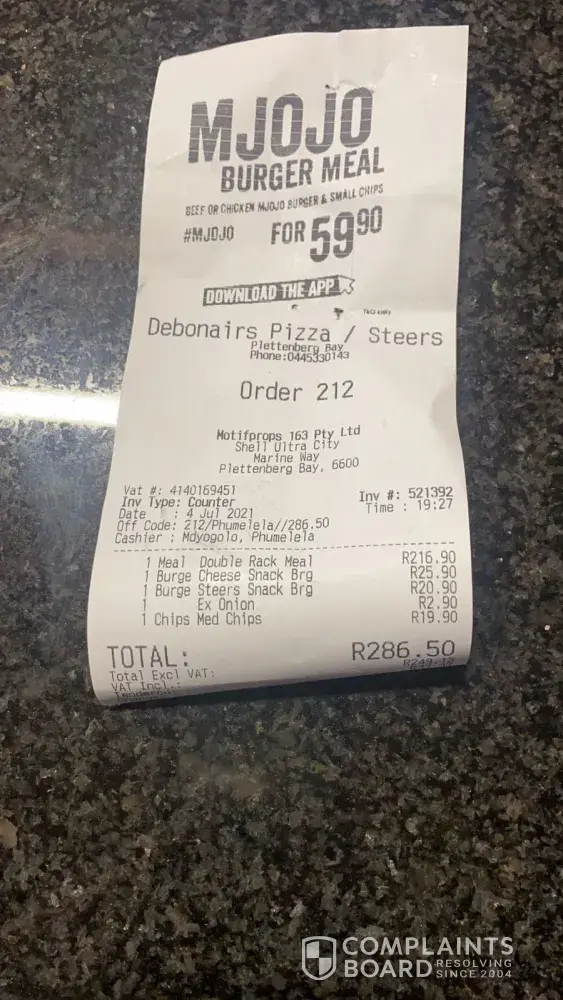 I made an order at Steers Meyerton for delivery this morning (2021/08/07)