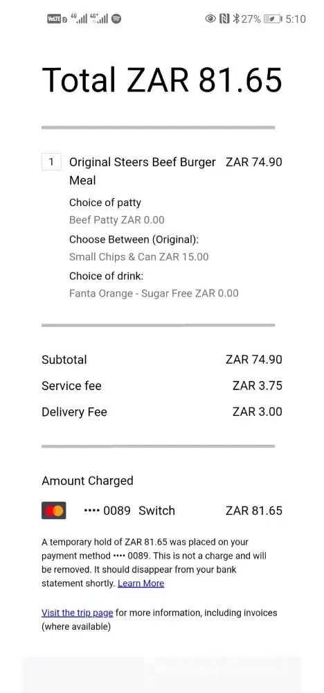 I am so disappointed because steers burgers are the best beef burgers and I cannot have my beef burgers anywhere else well its a preference but I cannot seem to find it in my heart to forgive this. I actually want to say I want my money back, I had to give my burger away because I don't do chicken burgers and only had chips so basically I feel like I bought steers chips worth R200... imagine such madness, especially in this pandemic.