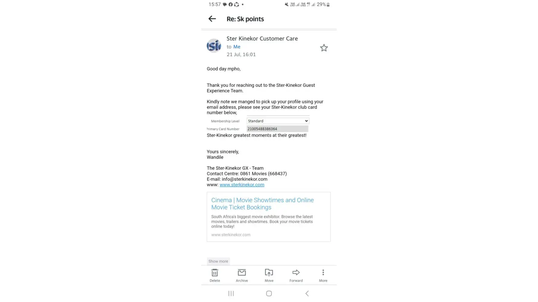 Ster-Kinekor emailsinfo@sterkinekor.com100%Confidence score: 100%Support