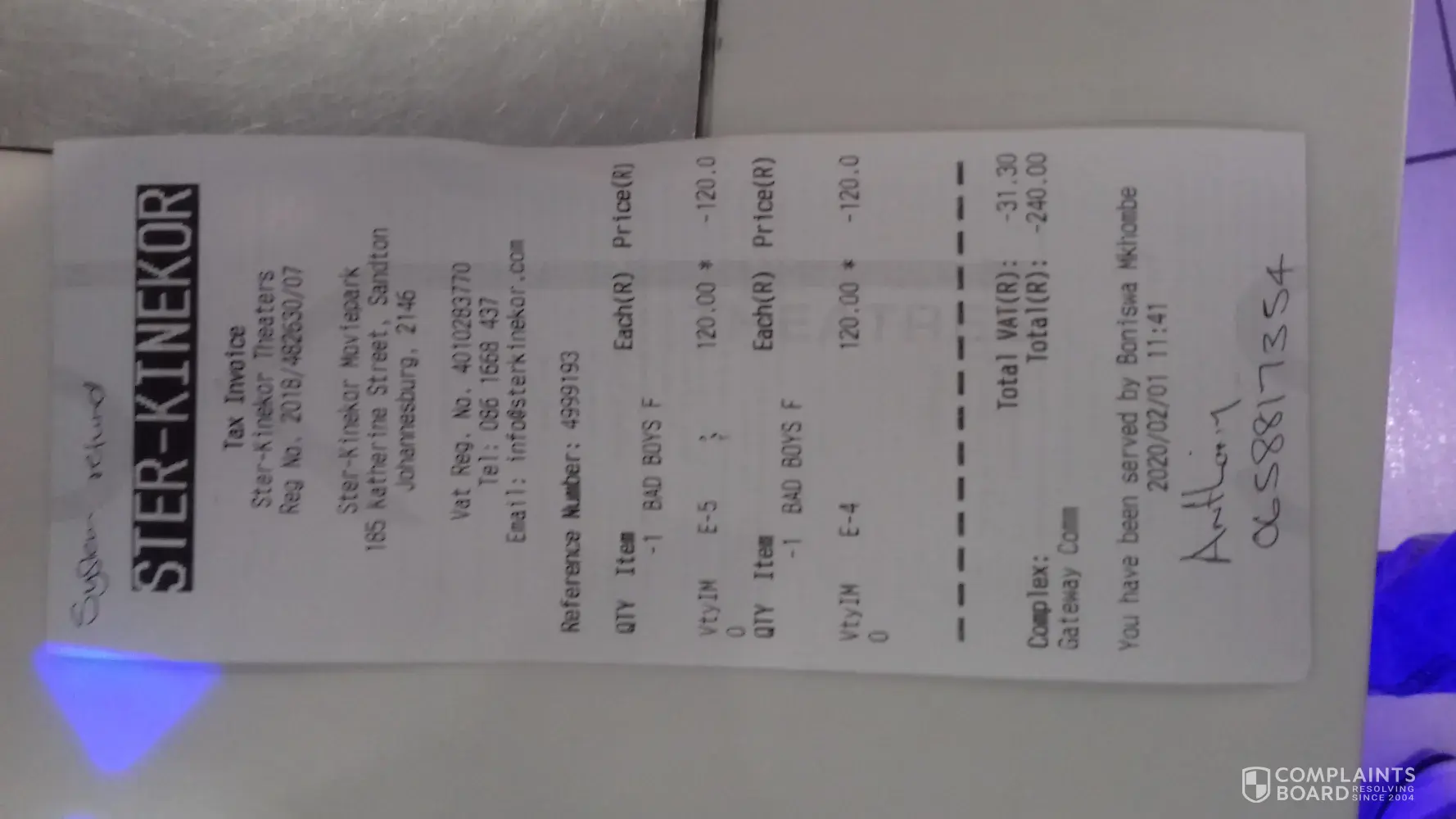 This is pathetic and I will never allow my kids to go to ster kinekor again. Hire people that can assist and people with better attitudes