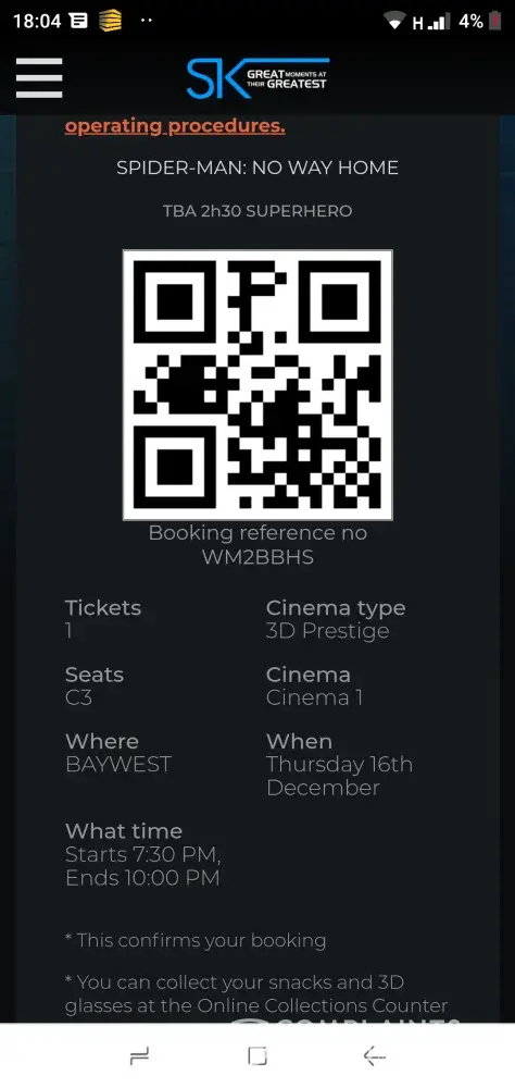 Desired outcome: Please give me a refund for my ticket along with the 3d glasses and snacks.Next time inform the customers with an email (since we always give our email and phone number when booking)