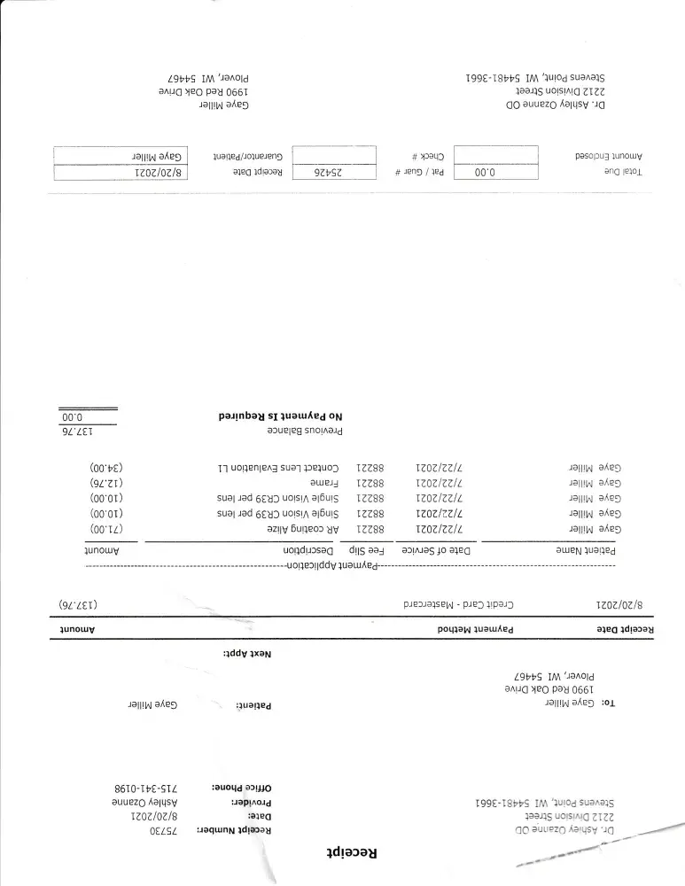She has paid at least $500 total for her eye glasses. Instead of buying more unfit glasses from Sterling Optical and spending more money, I suggested to here to find another eye glass shop. Had I not assisted her, she may have gotten taken for more.