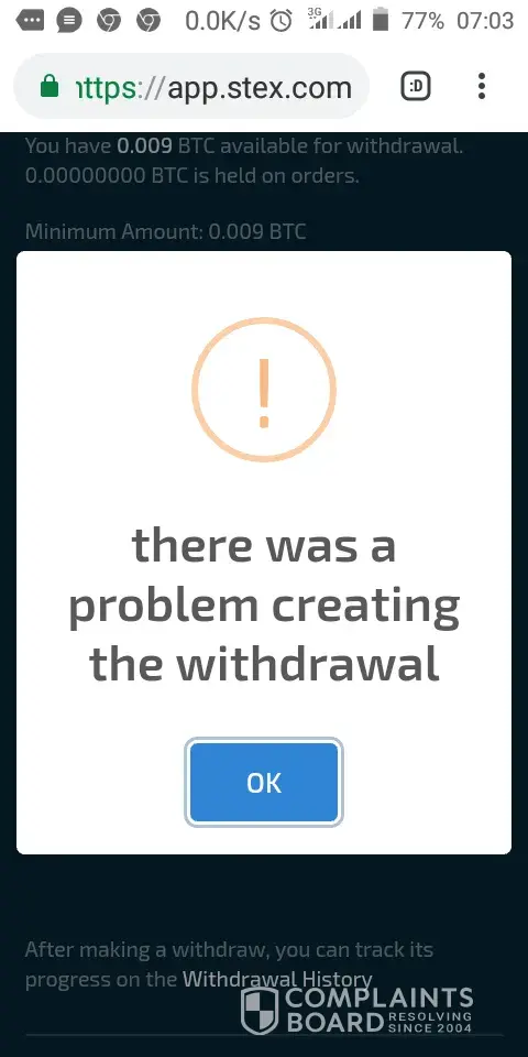 Stex.com’s earns a 2.3-star rating from 0 reviews and 3 complaints, showing that the majority of cryptocurrency traders are somewhat dissatisfied with trading platform.