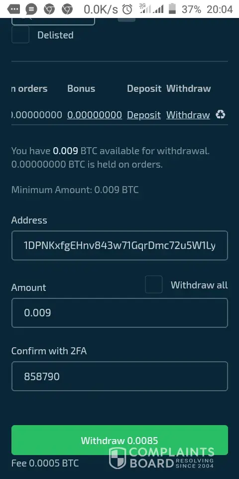 I made a deposit of about 0.007btc yesterday to be able to meet minimum withdrawal amount of 0.009btc.