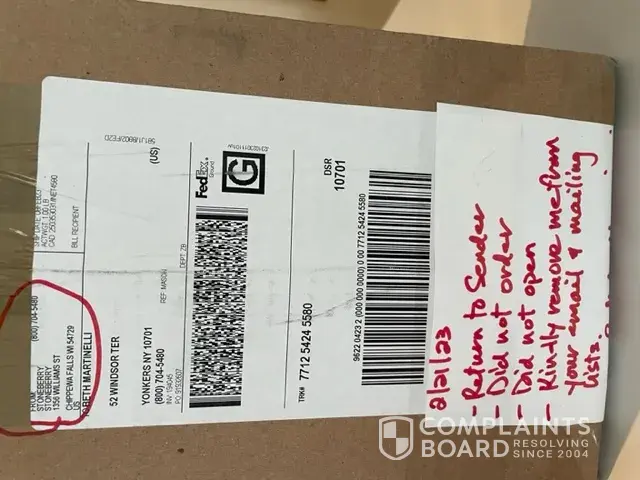 I was sent a package -- NEVER ordered or shopped at Stoneberry before -- and returned it unopened, requesting they remove me from their list.