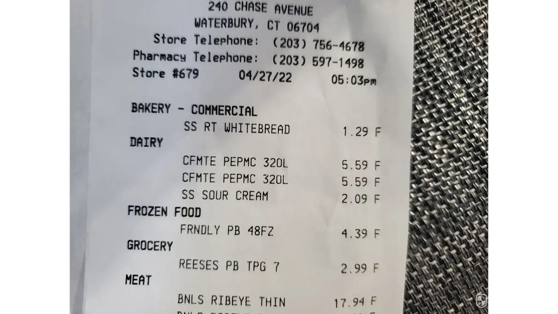 I went to pick up my groceries at the store on Kingstown Road in Wyoming/Richmond Rhode Island.