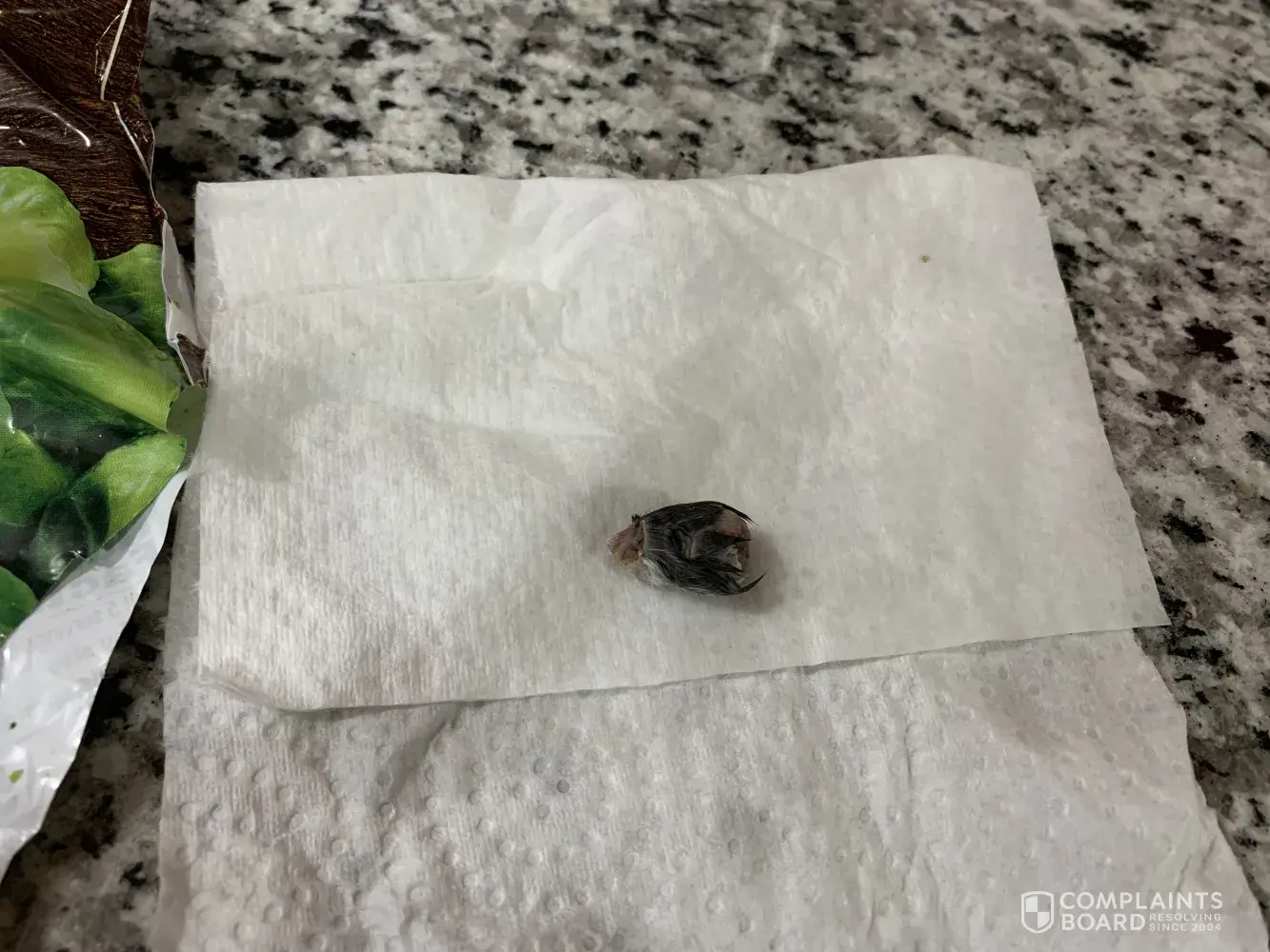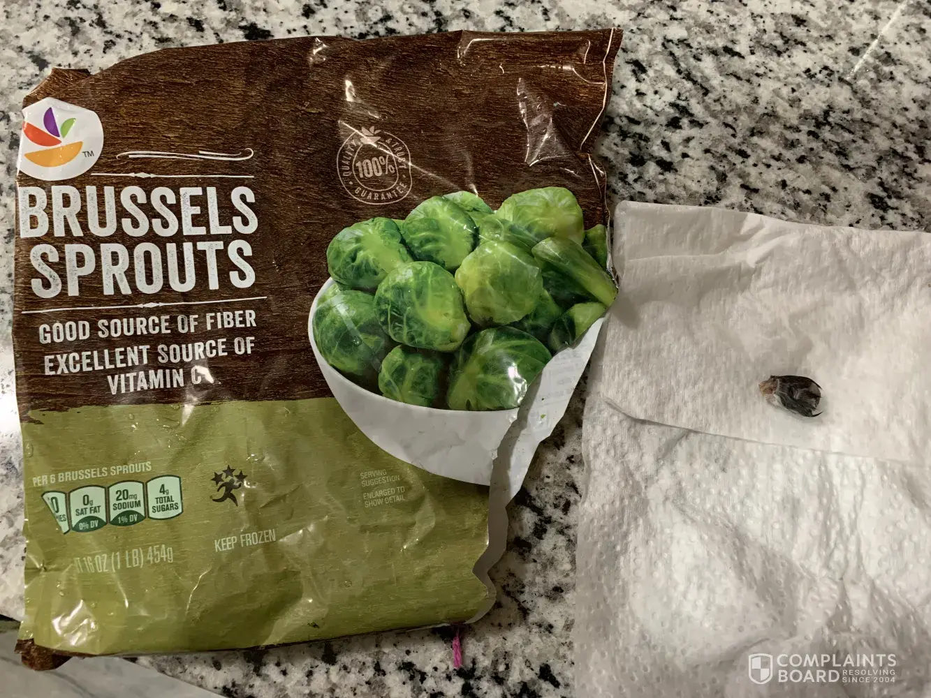 This morning I 12/24/21 @ 8:16 am I purchased several Stop and Shop brand frozen Brussels sprouts 16oz bags from the Stop and Shop 99 Linwood Avenue Colchester Ct 06415 location. When I got home, upon opening one of the bags I found part of a dead animal in the bag. I have attached pictures for you to review. I understand these things can happen however this is disgusting.
