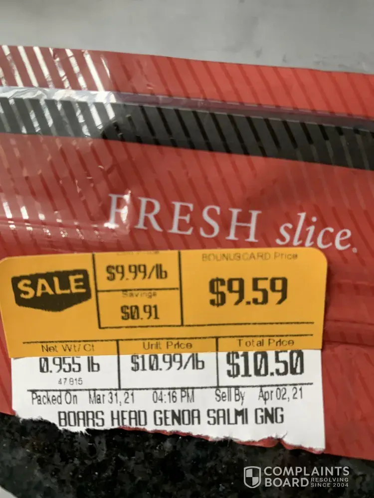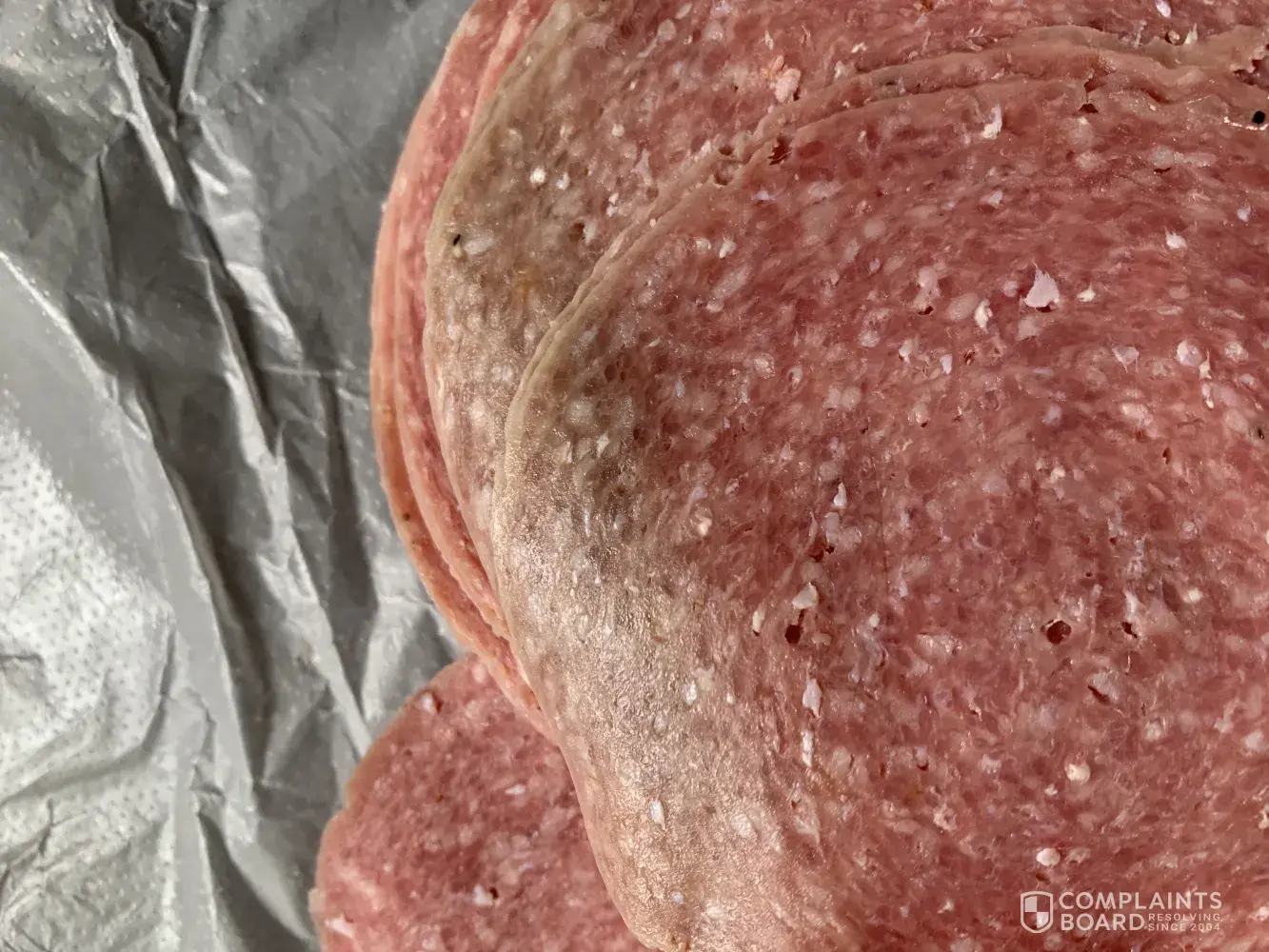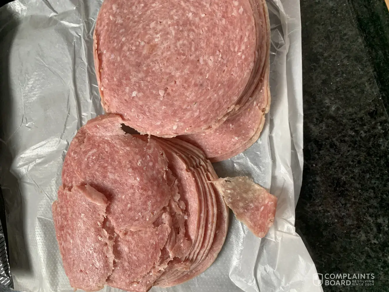 The store is selling cold cuts that contain an appreciable amount of end slices as well as selling a discolored possibly out of date product. This has happened on multiple occasions at this store.