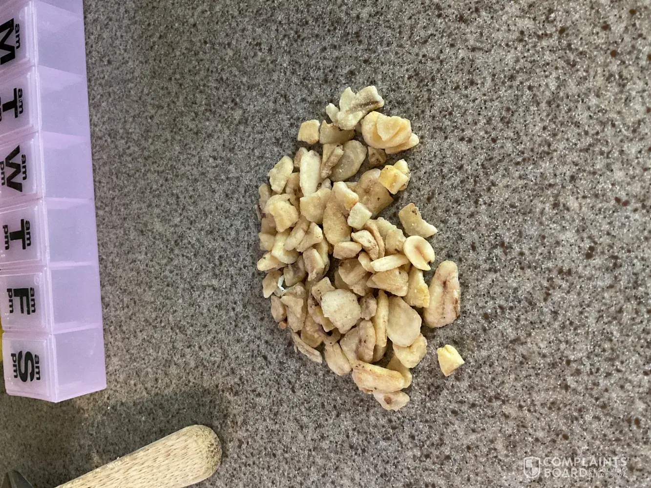 Recommendation: The following item be pulled from shelves. Item name: Island Mix Trail Mix Contains peanuts, raisins, banana chip pieces, dried pineapple, and cashews. Reason: the dried bananas are extremely hard and I am surprised I didn't break a tooth. Please review this product. I would be very surprised if you have not received complaints about thi...