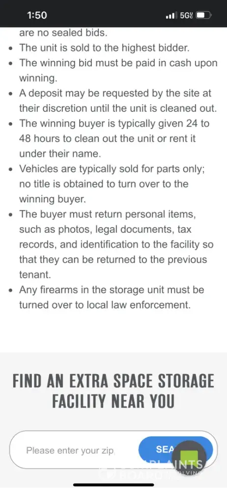 I was told by Tamya Robinson from StorageTreasures Help Center that they do extensive training with facilities to make sure they are following local lien laws, but they do not require their sellers to be honest or transparent. I found this quite concerning and realized why StorageTreasures.com has such a low rating.