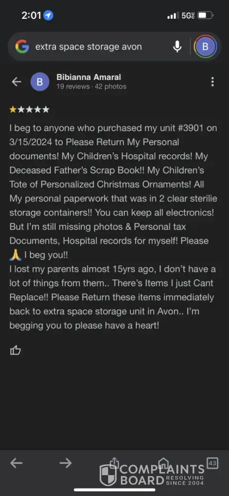 I lost my storage unit on 3/15/2024 at noon to someone who bid $130 dollars & i’m grateful they left 2 totes behind of photos! But i’m missing very important documents! My children’s hospital documents from the day they were born & their immunization records, personal tax documents & bank statements! More photos& a scrap book that I never got to...