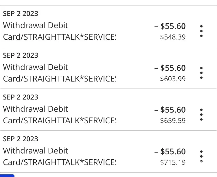 My auto pay did not go through so I decided to pay online in September for two phones so there should have been only two fees. For some reason I can't figure out how to bundle phones, so they take it out to different payments. So September they took a total of four charges when they should've only taken two. I ignored it, because in the past, I was told that "no worry it will go towards next month, and you will not be charged." Well, that's funny because they just charged me for those same two phones again in October just now this week. I had just enough in my account for my rent so this has overdrawn my account.