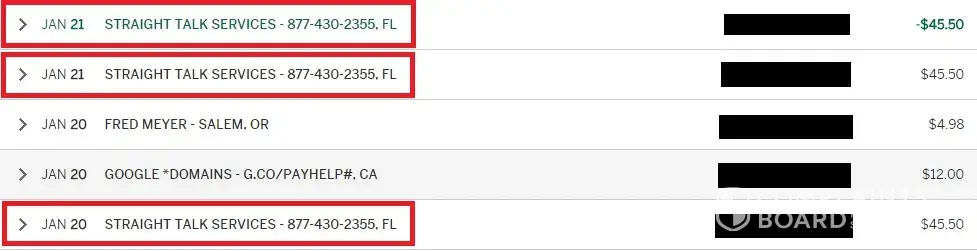They did it to me, they charged me on February 20, 2017, and then the same charge the next day 21st. I called them and the women who could barley understand English said she said the double charge, but kept me on the phone for an hour saying that she was waiting for her tools. She eventually stopped talking to me but I could hear her in the back breathing and talking to other people. I was on the phone for 2 hours or more waiting for them to fix this. I then disputed second charge with my credit card company and they deactivated my phone, saying that I was flagged for suspicious financial transaction. Since they were not going to give me the month I payed for, I disputed the other charge, telling my credit card company what happend, and there going to be an investigation. There is even an alert on the better business bureau about them offering unlimited data AT&T never agreed too, and customers are getting what they were promised. They are a company of scam artists, and it's better to pay more and go straight to AT&T, then to deal with the scam and people who can't speak English. But anyways, I'm going to post the transaction, and the refund from the second fraudulent charge on the 21st, which they deactivated my service for. The 21 charge was removed as you can see with the minus sign in front of it, but there is still the 20th charge which I payed for, but have no service for. My credit card company is going to remove that one in 3 days. I blacked out my name, but it's all there, and straight talk can kiss my ###.