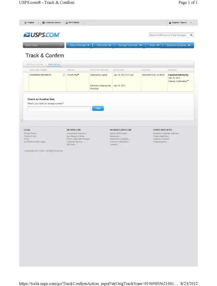 Now I have verification from the USPS that it wasn't received. Now maybe I can do something about it.