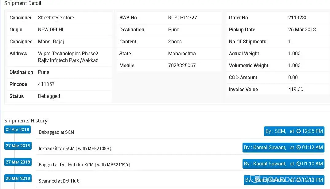 This is the worst experience with SSS. I have ordered my order on 10/3/2018 which was expected to be deliver on 31/03/2018 and today is 10/04/2018 and the order has not been delivered. When I have called r quick express to track my order they are being so rude to me and saying that your order address is not in service area. Can i know who is at fault ? I have been requesting you people from last 15 days but no positive reply. This is the service you provide to your customer ? I have also attached the tracking details as status is not changed since 2nd of April. Please help me.