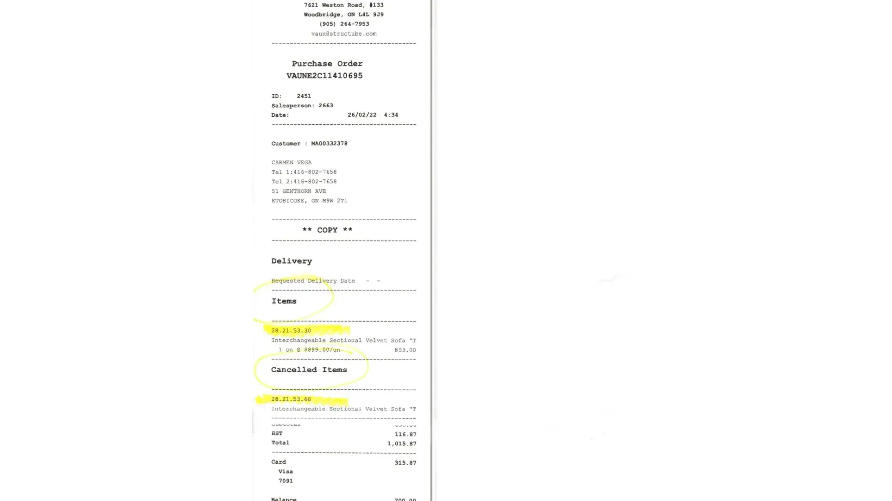 On February 26, 2022, I visited your website to see if I could find a sofa that would have it at home by the end of March 2022. Fortunately, I found a sofa on sale and even better, that I would have it in my possession by the end of March 2022. of the month that I wanted. Therefore, I went to his business in Woodbrige, 7621 Weston Road #133, where I was very well attended and bought the sofa, assuring me that I would have it at my house at the end of March. Last Friday, March 25, I called the Woodbrige business and they informed me that unfortunately I had to wait another month to get my sofa, that is, I could have my sofa at the end of April, that is, wait 30 more days.